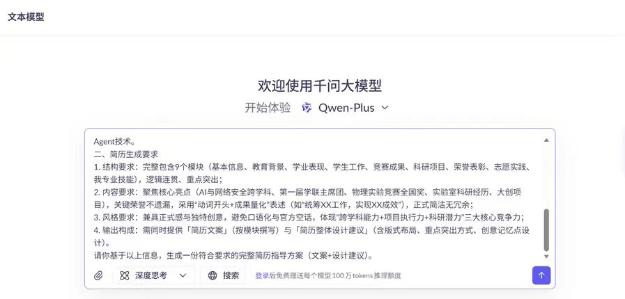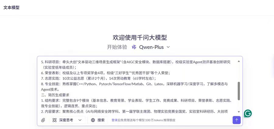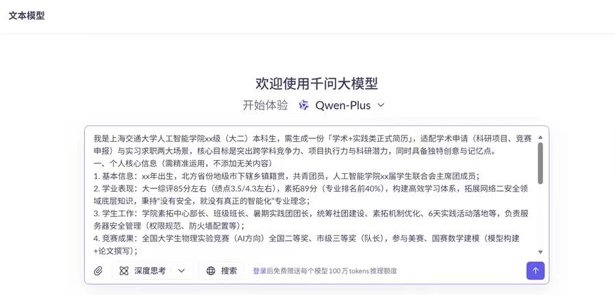 个人简历场景:侧重考察AI的信息提炼能力、格式规范性和个性化呈现。
