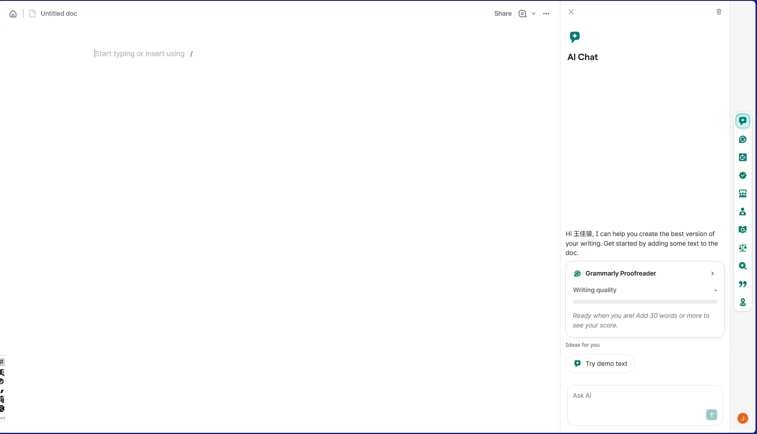 以与Grammarly的交互界面为例: