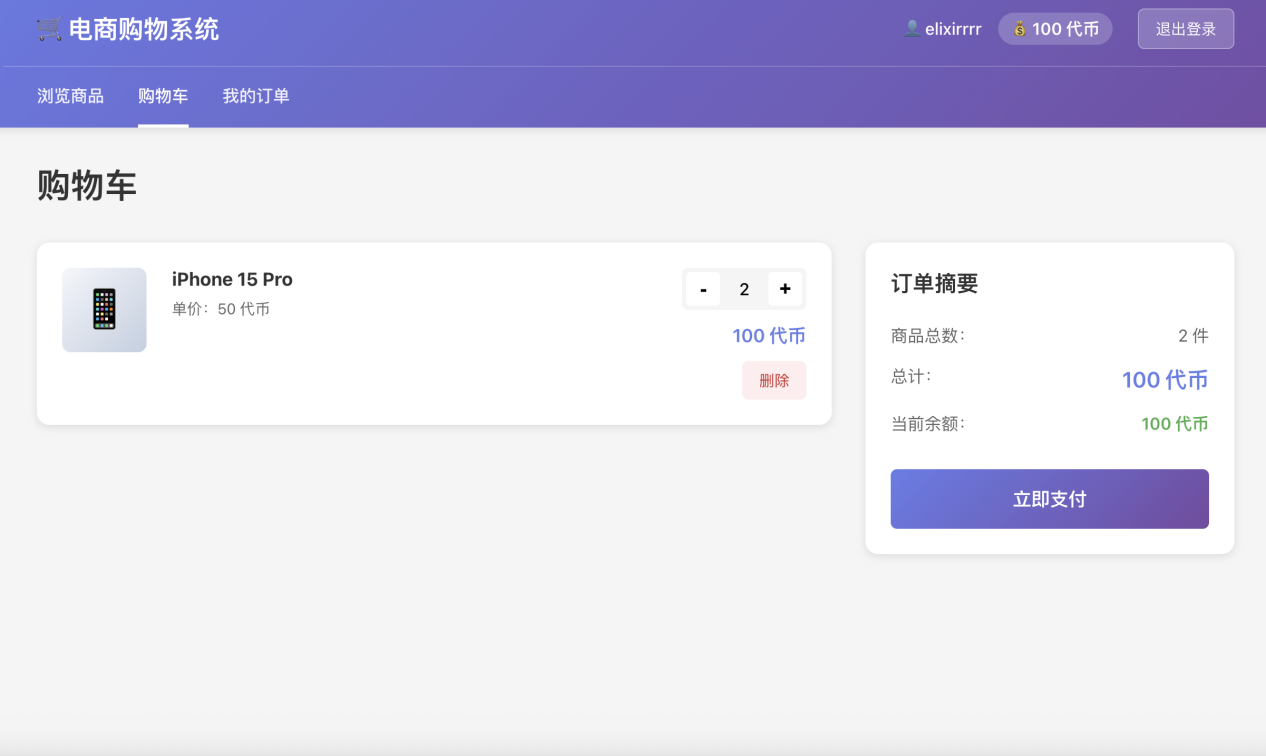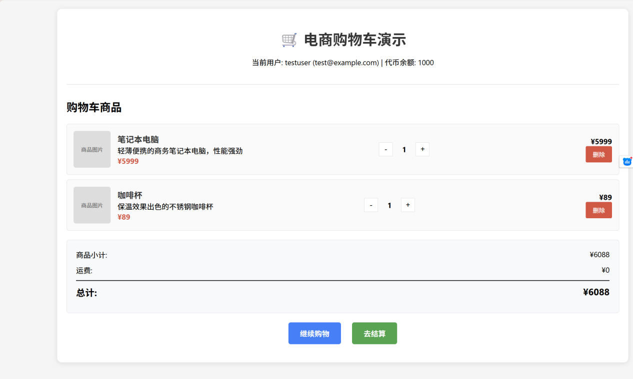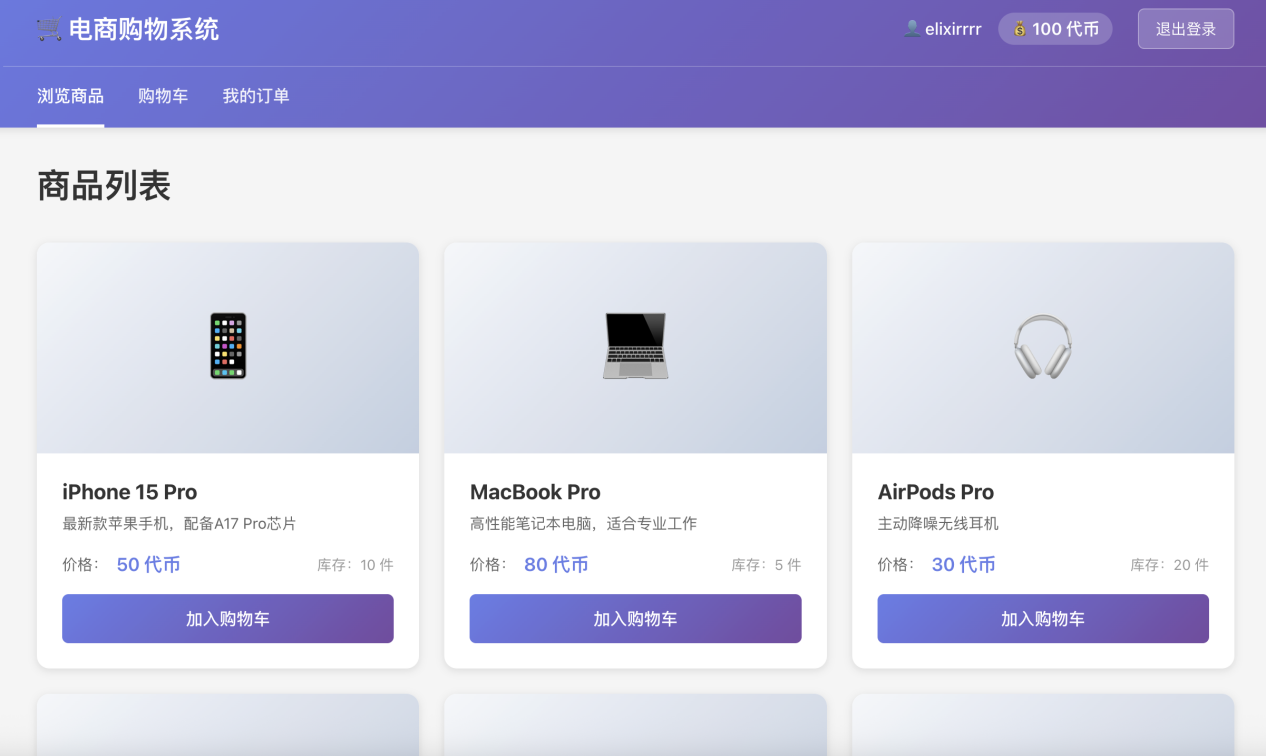 测试目的:考察AI对复杂业务逻辑的理解能力、数据结构的设计能力以及基本的前后端交互实现。任务描述:要求AI从零构建一个简易的电商购物系统,需包含以下核心功能: