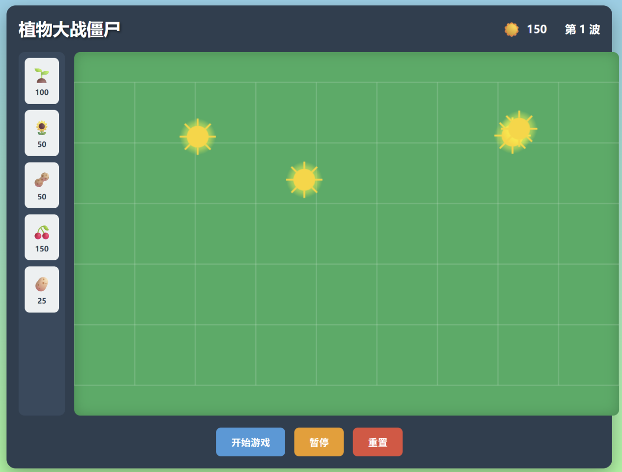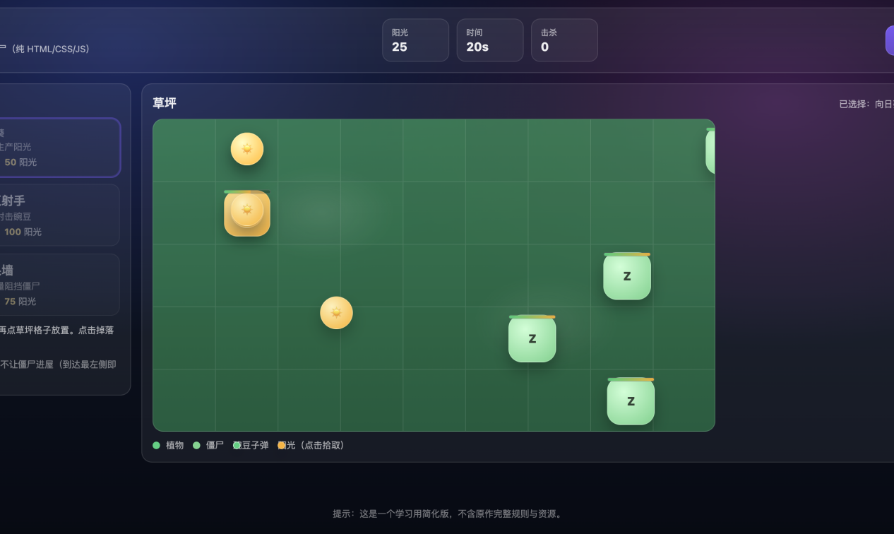 - 交互设计:阳光收集机制、卡片选择与放置。