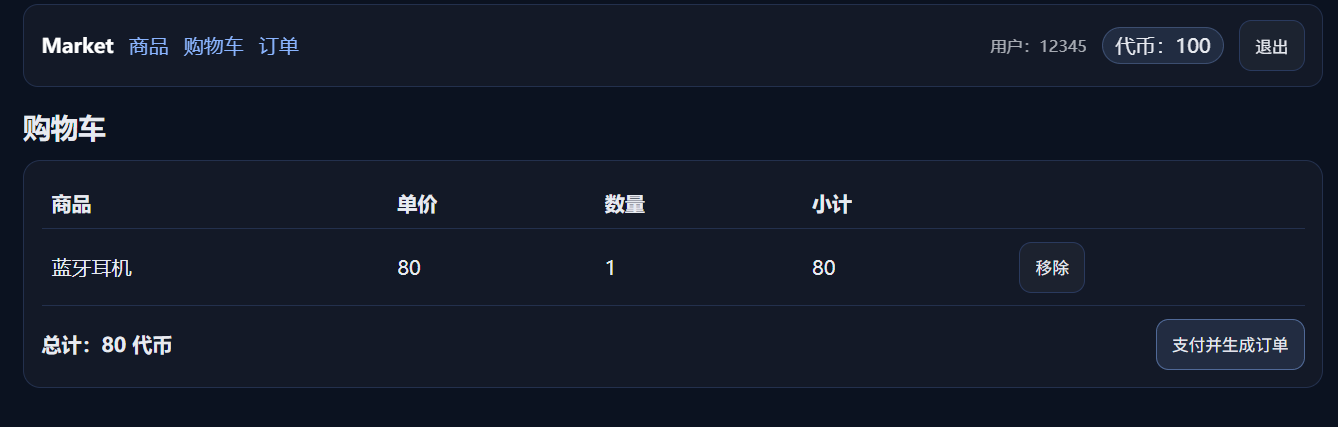 - 购物车逻辑:添加商品、移除商品、数量增减、实时计算总价。