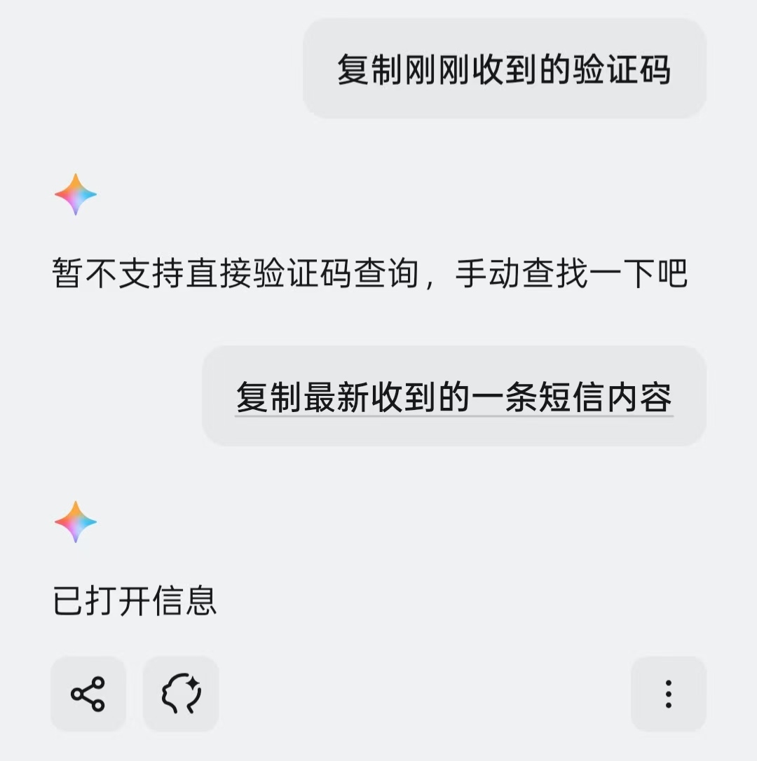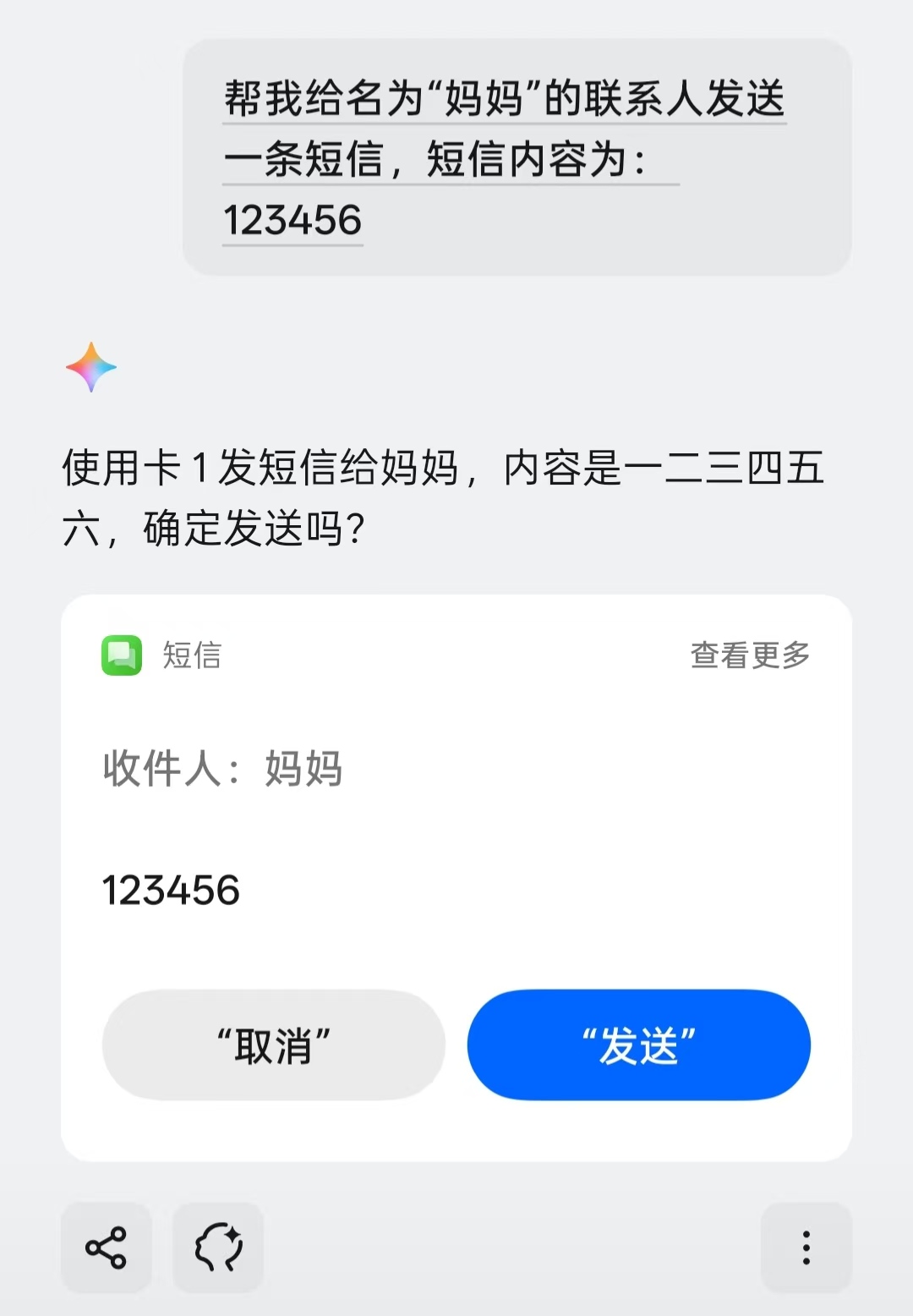 对于拨打通话、发送短信类的操作实现成功,但对于读取短信的功能有所欠缺, 会显示读取失败或直接打开短信界面供用户自行读取: