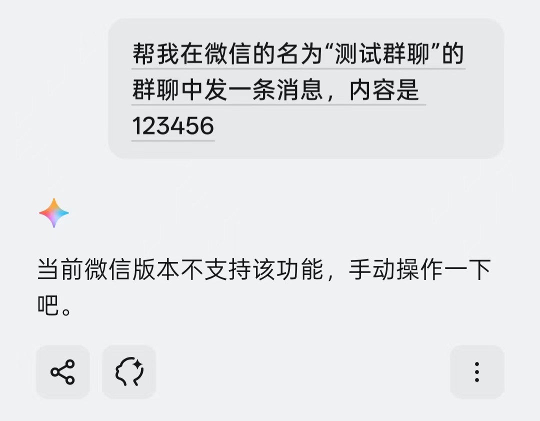 在基础指令执行层面,两类产品呈现能力断层:系统原生智能体依托系统权限,可顺利完成打开应用、设置闹钟、发送短信等基础操作;而第三方通用智能体受限于安卓沙盒机制,连最简单的“打开微信”指令都无法执行,只能以文字教程引导用户手动操作,基础执行能力几乎为零。