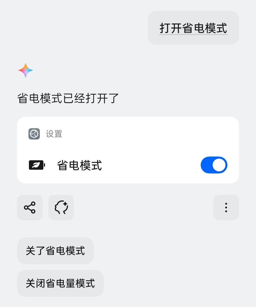 小布助手可以完成系统控制、应用唤起的基础执行,并且在省电模式和下述即将出现的时钟等界面右方的按钮处,可以快捷关闭或再次打开。