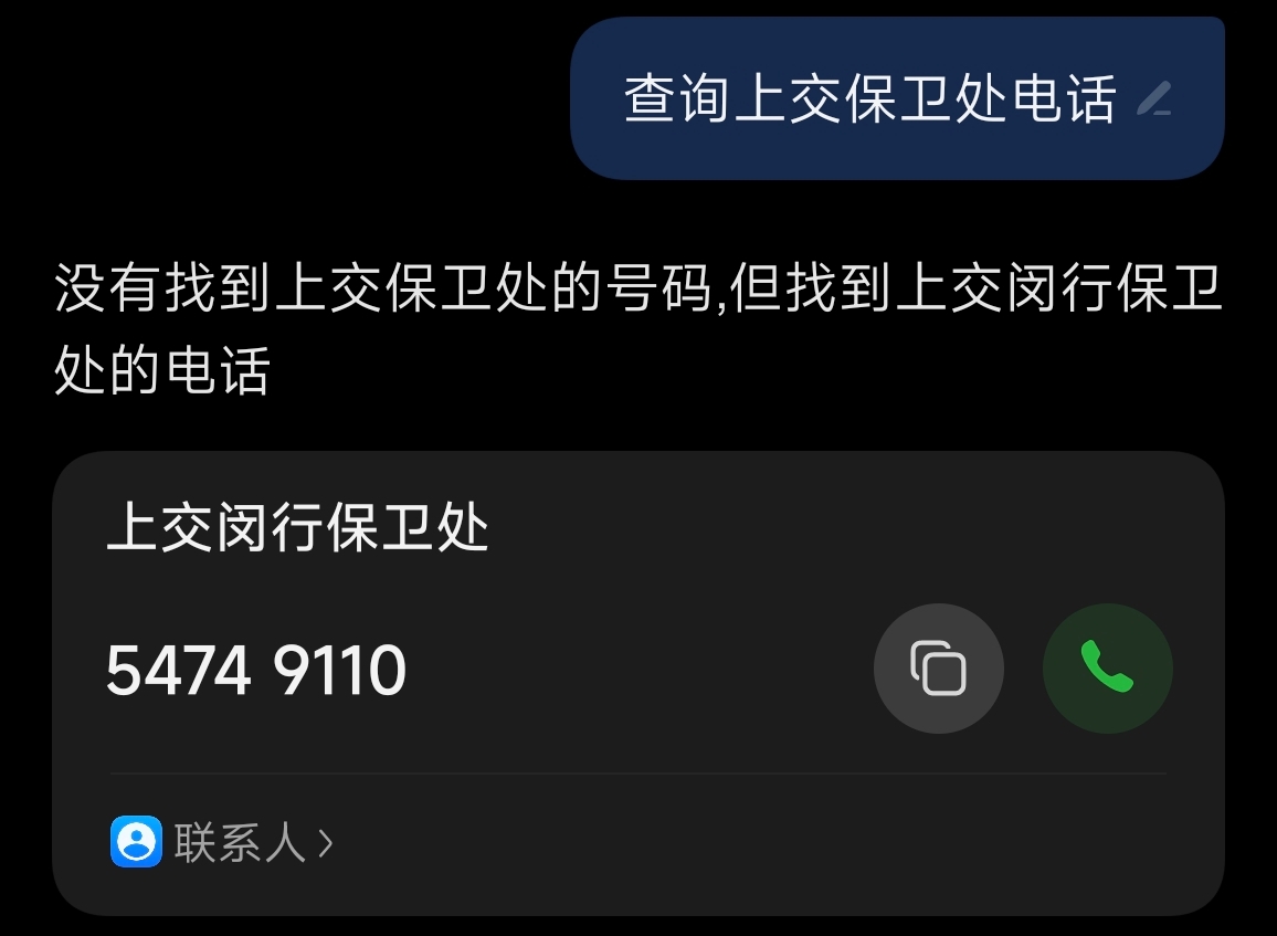 1)语音输入/键入“查询xx电话”/“呼叫xx”