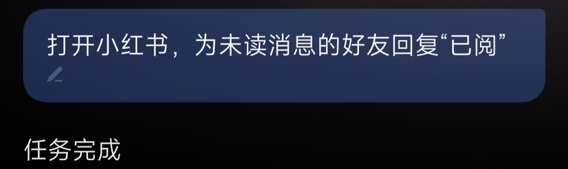1)语音输入/键入“打开小红书,为有未读消息的好友回复‘已阅’”