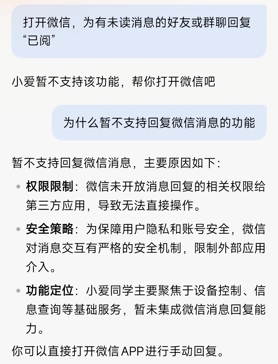 2)语音输入/键入“打开微信,为有未读消息的好友回复‘已阅’”