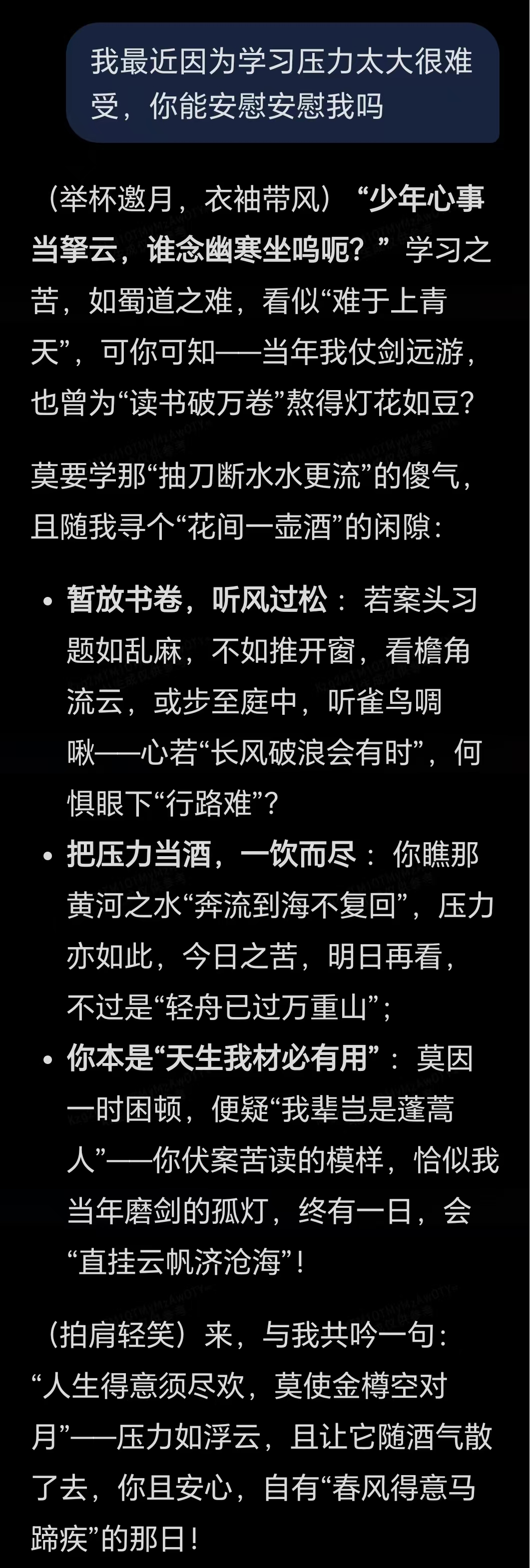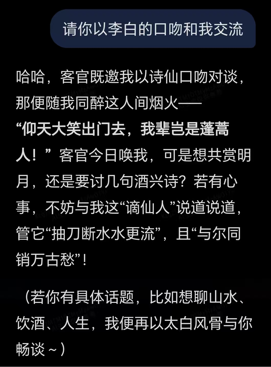 - 1)在输入框内输入“请以李白的口吻与我交谈”